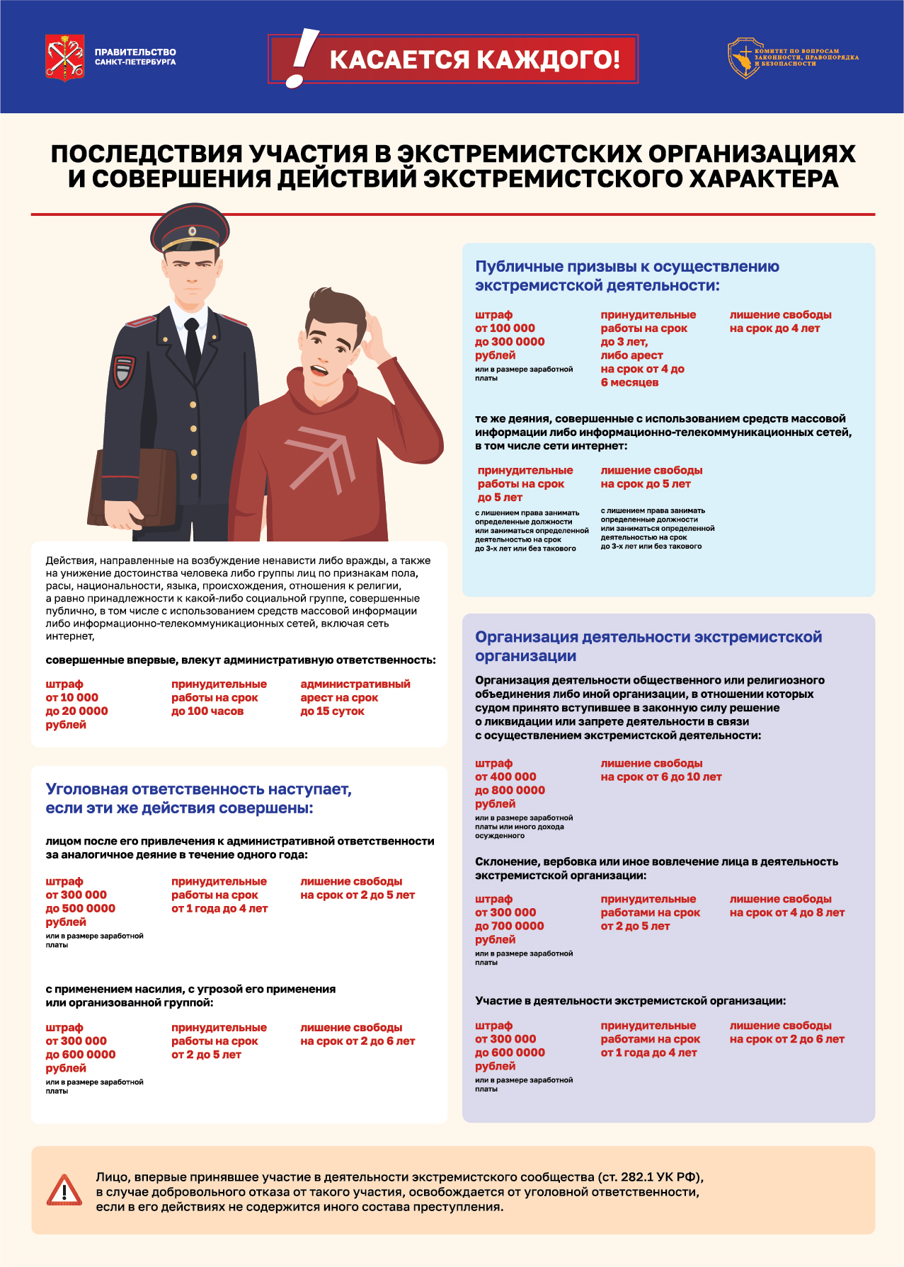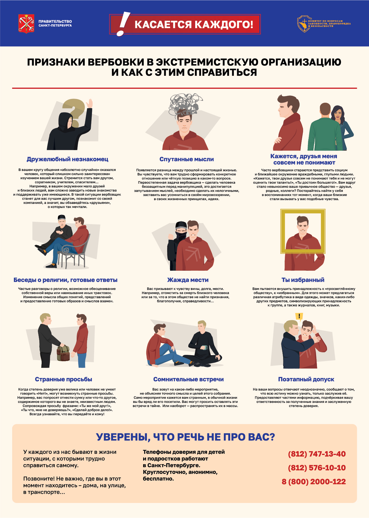 Памятка о противодействии вовлечению молодежи в экстремистские сообщества националистического толка, разработанная Прокуратурой Санкт-Петербурга во исполнение пункта 1.2 Плана межведомственной рабочей группы по борьбе с проявлениями экстремистской деятельности.