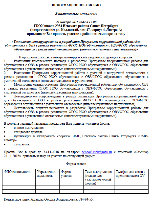 ГБОУ школа №34 Невского района Санкт-Петербурга (подразделение: ул.Коллонтай, дом 27, корпус 4, Литера А) приглашает Вас принять участие в районном семинаре