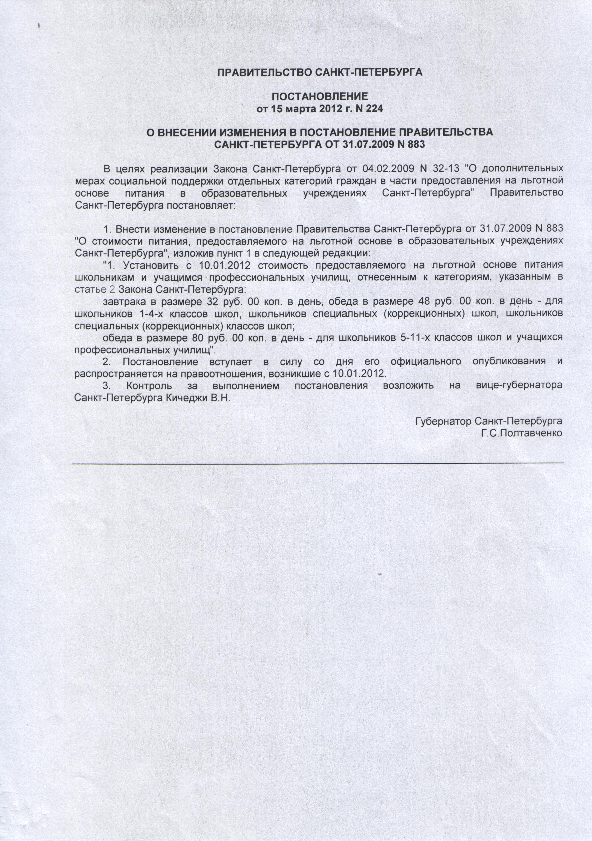 Скачать этот файл (postanovlenie_224.jpg)ПОСТАНОВЛЕНИЕ Правительства Санкт-Петербурга от 15 марта 2012 г. № 224